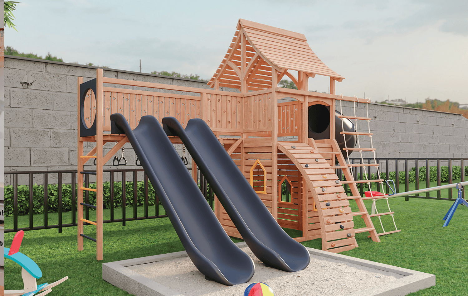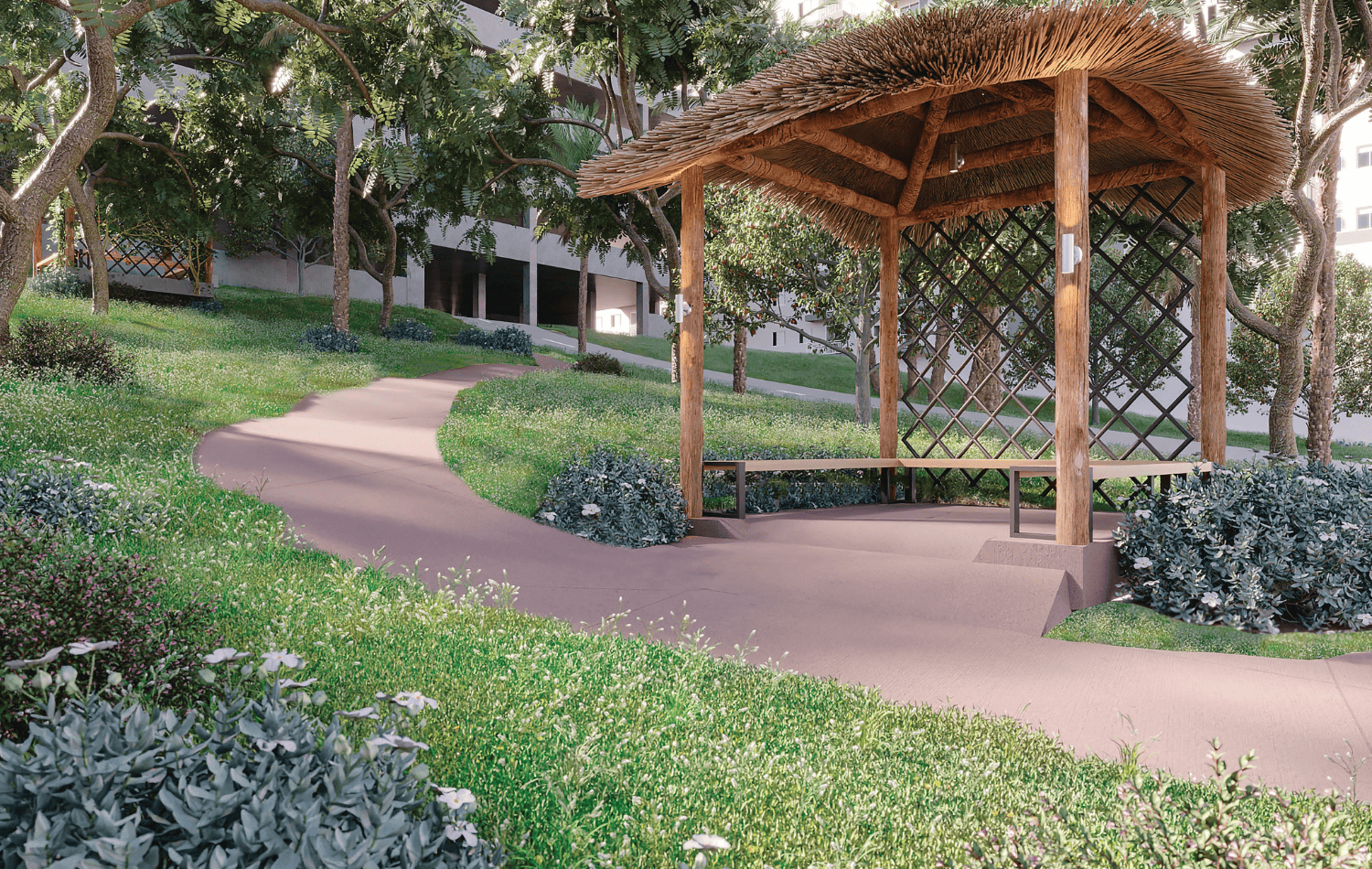 Um grande espaço verde para relaxar e caminhar, piscina com vista panorâmica e área de lazer completa para todas as idades, pensadas como extensão do seu lar.